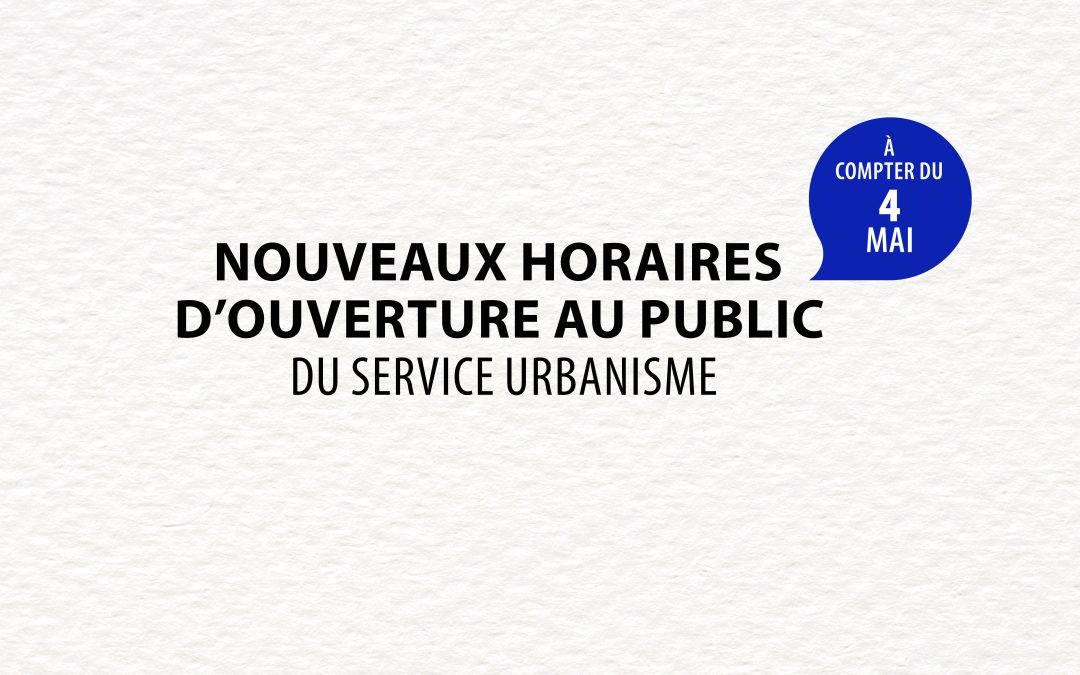 Nous vous informons qu’à compter du 4 mai, les horaires d’ouverture au public du service urbanisme évoluent comme suit :